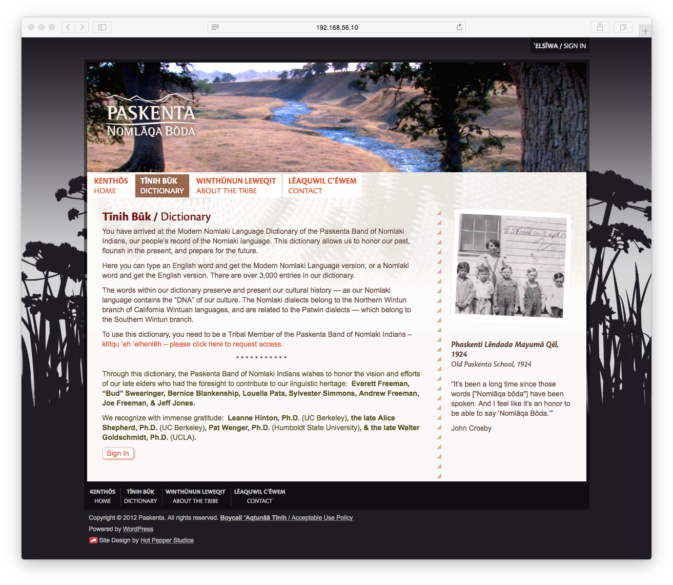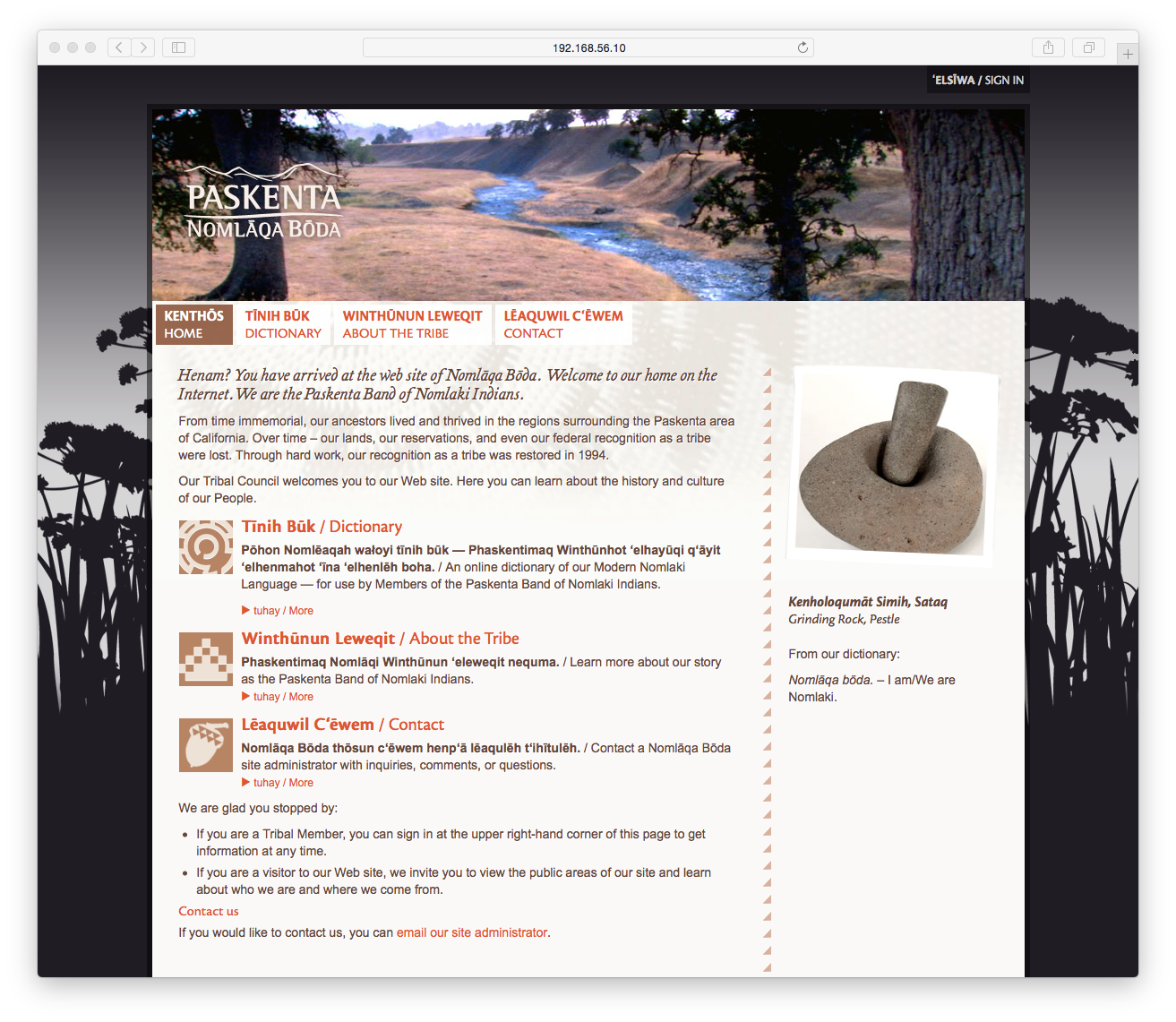 The Paskenta Band of Nomlaki Indians are a small Native American tribe in Northern California. Through perseverance and hard work the Tribe managed to regain their federal recognition and has begun the long process of reasserting their unique Tribal identity. They came to us to for the next step: an online platform to teach their Tribal members their own language and culture.