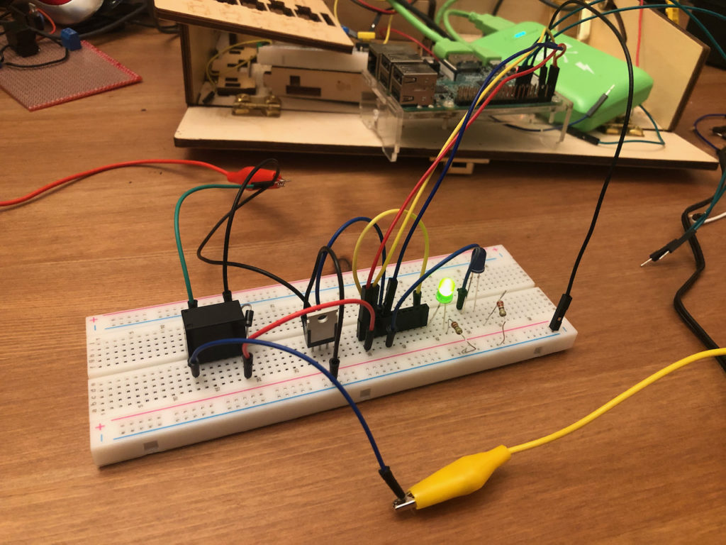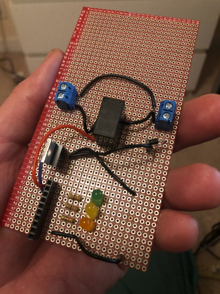 Hopefully these photos will be helpful in figuring out how it all goes together. It’s hard to see in the photos, but the flyback diode mentioned in Ben’s instructions can be seen in-line with the ground to the right if you look close.